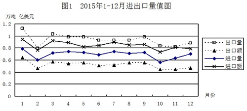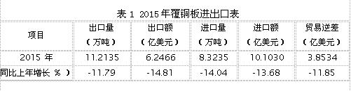 根據(jù)家有關部門統(tǒng)計的2015年我覆銅板進出口數(shù)據(jù),如圖1和表1所示。