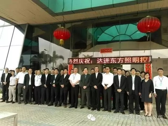 集團公司董事總經理黃永財先生、副總經理張垂榮先生、總經理助理曾擁光先生等管理層于18日早8:30帶領企業60多名管理人員在廣東達進電子科技有限公司大堂慶賀:達進東方照明控股有限公司香港股票【00515】于2016年4月18日復牌 ,并聽取黃總、張總的重要講話!