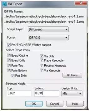 系統(tǒng)需要能夠以與 DXF 參數(shù)設(shè)置類(lèi)似的方式,來(lái)控制 IDF 文件中將包含的內(nèi)容,如圖 6 中所示。如果某些元器件沒(méi)有高度信息,IDF 導(dǎo)出能夠在創(chuàng)建過(guò)程中添加缺少的信息。