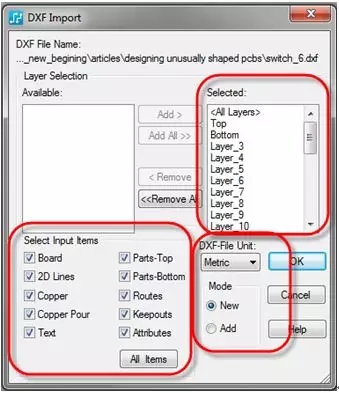 圖 5:PCB 設(shè)計(jì)工具(如這里介紹的 PADS)需要能夠使用 DXF 格式控制所需的各種參數(shù)。