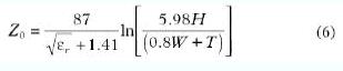 公式(6)可以用于計算一塊FR4板的特征阻抗。